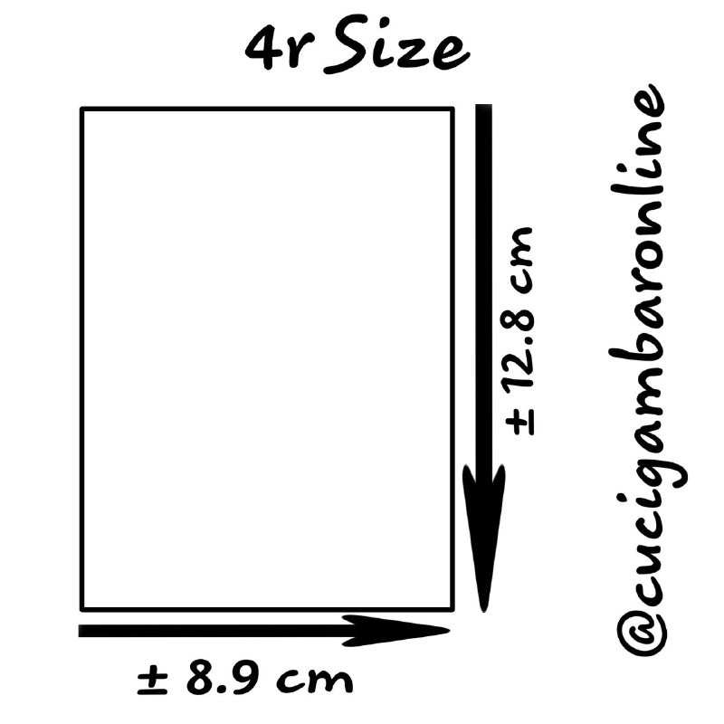 Ukuran foto 4r dalam satuan inci. Artinya lebar foto tersebut adalah 1200px dan tingginya adalah 1800px. Ukuran 4r dalam pixel adalah 1200 x 1800 px dengan resolusi 300dpi.